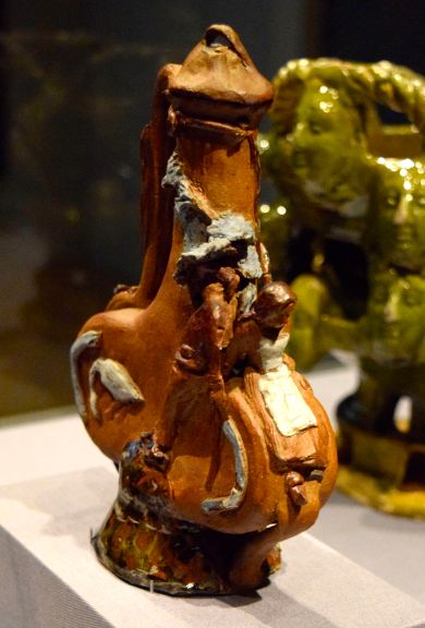 This smaller vessel with added decoration and figures and all done in a free-form manner is representative of a number of ceramic pieces in the exhibition. The amount of color and detail he added is also reminiscent of many of his paintings.