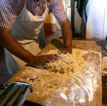 As we cooked we shared our travels, drank wine, and took turns with the actual pasta-making. Here’s the finished meal, below, just before serving it around the massive farm table in Elena’s kitchen. It was as fun and festive as Giorgio’s, perhaps more so since there were more of us.