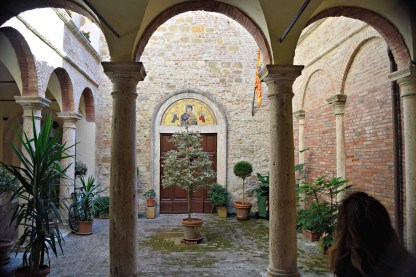 First, Assisi struck me as pristine. Other Tuscan towns had similar hilltop locations and were essentially all stone, but none of them were as bright and white in Frances Mayes’ famous Tuscan sun. Assisi is not only the birthplace of St. Francis; it is also the birthplace of St. Clare, founder of the Poor Sisters, later the Order of Poor Clares. Despite the crush of tourists we experienced elsewhere, Assisi was surprisingly quiet. I don’t know if we should attribute that to visiting on Sunday or if it is simply the temper of the town.