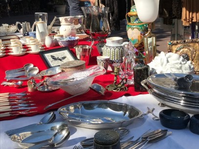 As luck would have it, we were in Nice on the day of their regular antique market, which in this case was blocks-long, winding from one square to another. I was in heaven, Steve not so much. One of the most striking aspects of these markets is the age and provenance of the goods. There are chandeliers and gilt mirrors, confit pots, textiles and more that I have just never seen in a market in the midwest.