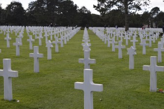 Our guide timed our visit to the American Cemetery for the hour when the flag is lowered at the end of the day. Walking to the cemetery I was tired. Despite lovely clear skies and fair weather, it was a very windy day, and we had already walked a lot. But I think I was also feeling emotionally spent. It’s not possible to walk these roads and towns without thinking of the people who came before. And not just the soldiers. But the brave French citizens who loved their communities and way of life, who were totally upended by the German invaders, many of them risking their lives working with the French underground, and who in the end so gratefully welcomed the Allies.