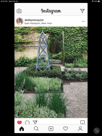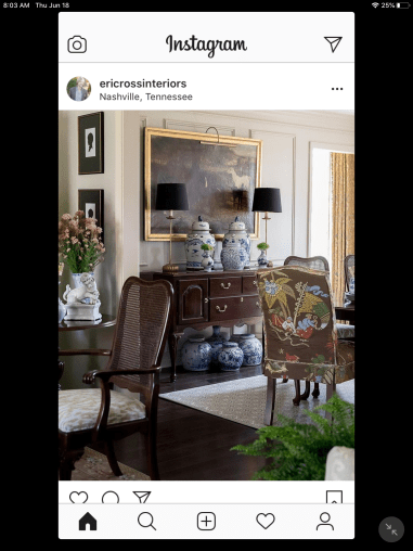 My IG feed is pretty limited, to places I like, gardening, decorating and collecting. (I think of FaceBook as the repository of everyone’s family vacation pictures.) Keeping that in mind, IG is like a daily magazine I flip thru for ideas and inspiration. There is always plenty to “like” and even comment on. Sometimes I save an image, though I’m not always sure why. Here are a few recent saves:
