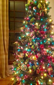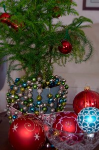 Although we have an artificial tree, I love fresh greens. I bought three big bundles to use inside and out with seeded eucalyptus and red winterberries. They pretty much arranged themselves. Next year I may try working fresh greens into some of my artificial greenery.
