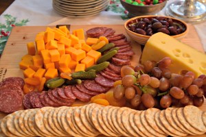 I have learned to keep the menu simple, so I can enjoy the party. This year it was really just meat & cheese trays, some veggies & dip and Steve’s burgundy meatballs. It’s pretty easy to “dress up” the trays with fancy olives, some fruit, even little cornichons or nuts. The meatballs are the “hearty” snack and definitely made ahead. We re-heat them on the stove, then pop them into a chafing dish for the afternoon. I made two batches of cookies and bought some and, voila! we had a sweet tray.