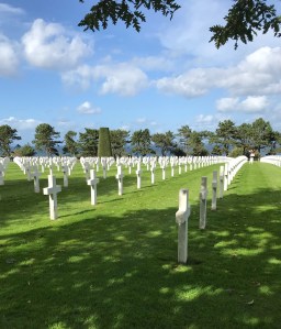 Our guide timed our visit to the American Cemetery for the hour when the flag is lowered at the end of the day. Walking to the cemetery I was tired. Despite lovely clear skies and fair weather, it was a very windy day, and we had already walked a lot. But I think I was also feeling emotionally spent. It’s not possible to walk these roads and towns without thinking of the people who came before. And not just the soldiers. But the brave French citizens who loved their communities and way of life, who were totally upended by the German invaders, many of them risking their lives working with the French underground, and who in the end so gratefully welcomed the Allies.