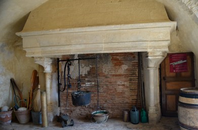 We had access to a limited part of the interior, but the owner did share the original castle kitchen with us, along with the courtyard area which dates to the 12th and 15th centuries. Despite the lack of conveniences like electricity or running water, the owners do use the main salon in the summer, as well as an adjacent room. Interestingly, the fireplace in the main salon is also classified for historical preservation, and has been restored but fires are not permitted per the architect.