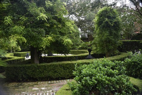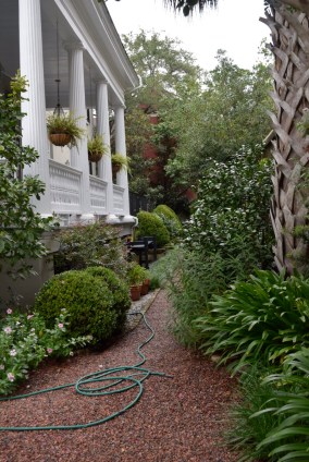 I am totally charmed by Charleston’s many gardens, some of them public, some more private, and some completely hidden. At this time of year they are very lush and green.